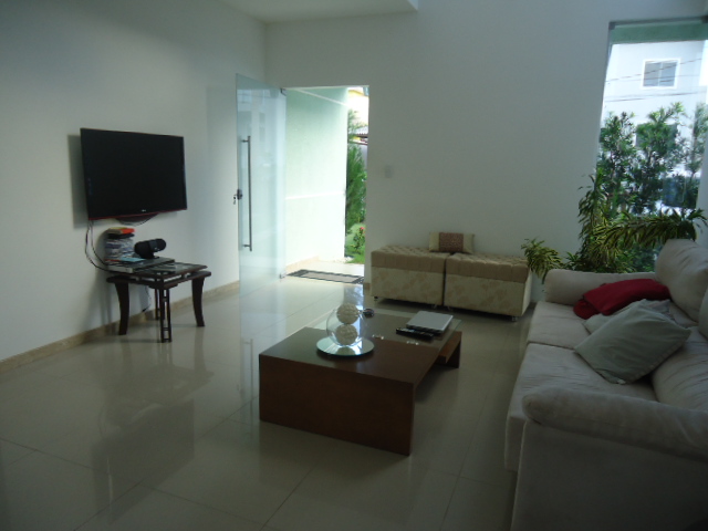 Casa Condomínio fechado na Estrada do Côco Km 10 com 4 quartos, sendo uma suíte com closet, armário e varanda, sala em porcelanato, cozinha com armários planejados, dependência completa de empregada, piscina, garagem com portão eletrônico.